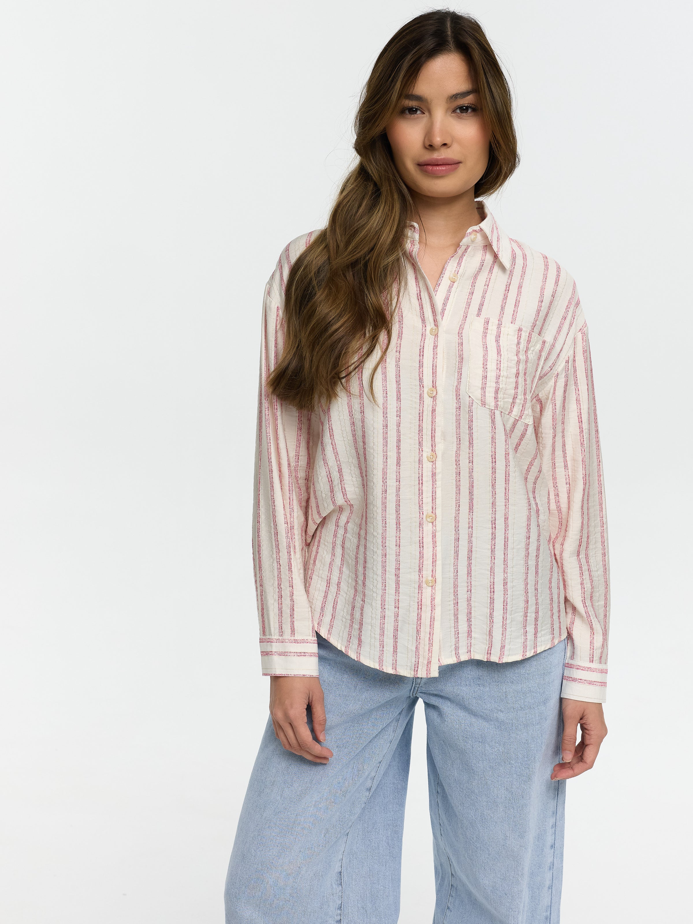 Langärmelige Bluse in Creme mit rose-farbenen Streifen
