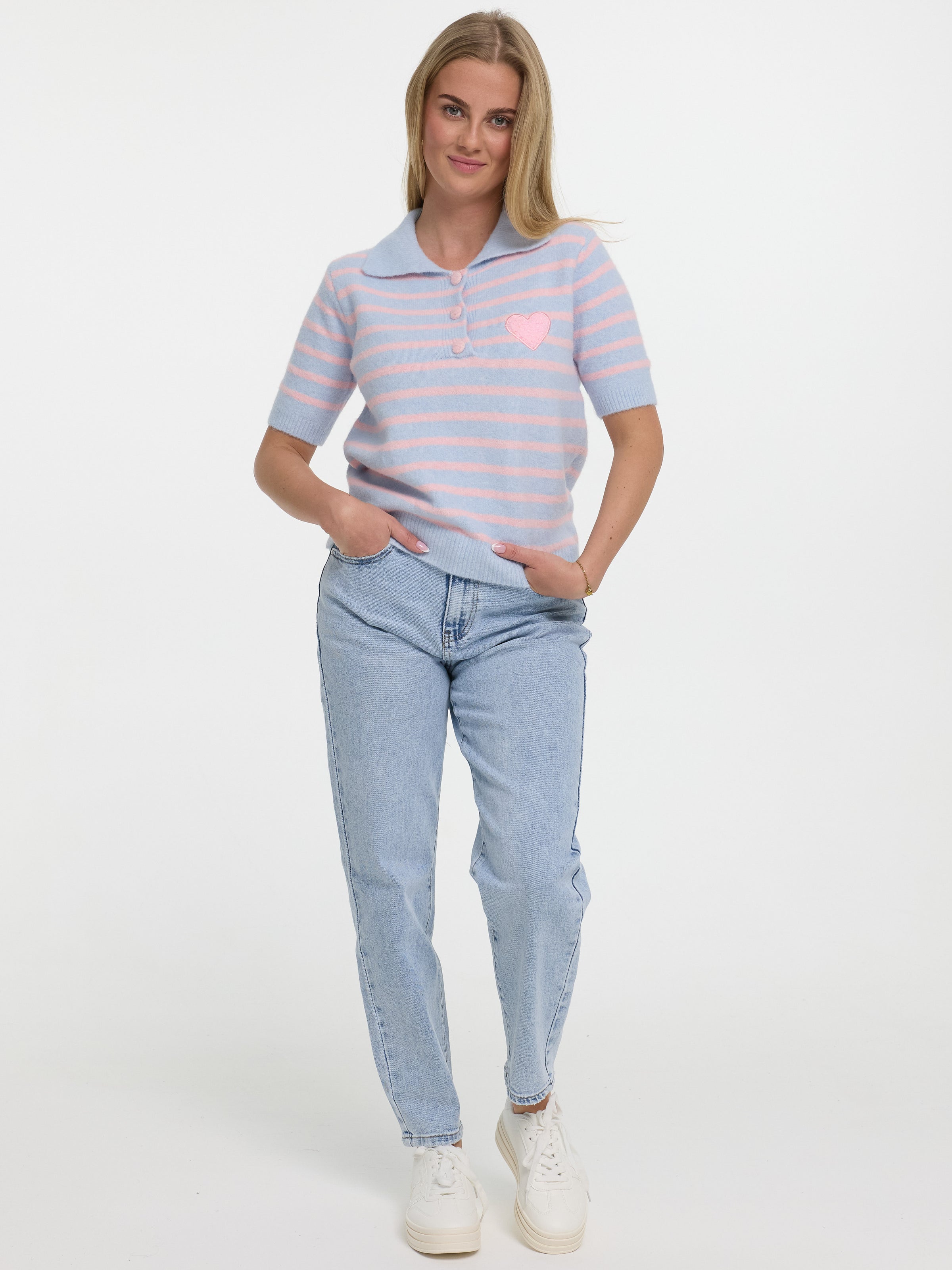 Strickpolo-Shirt "Mathilda" in Rosa/Blau
