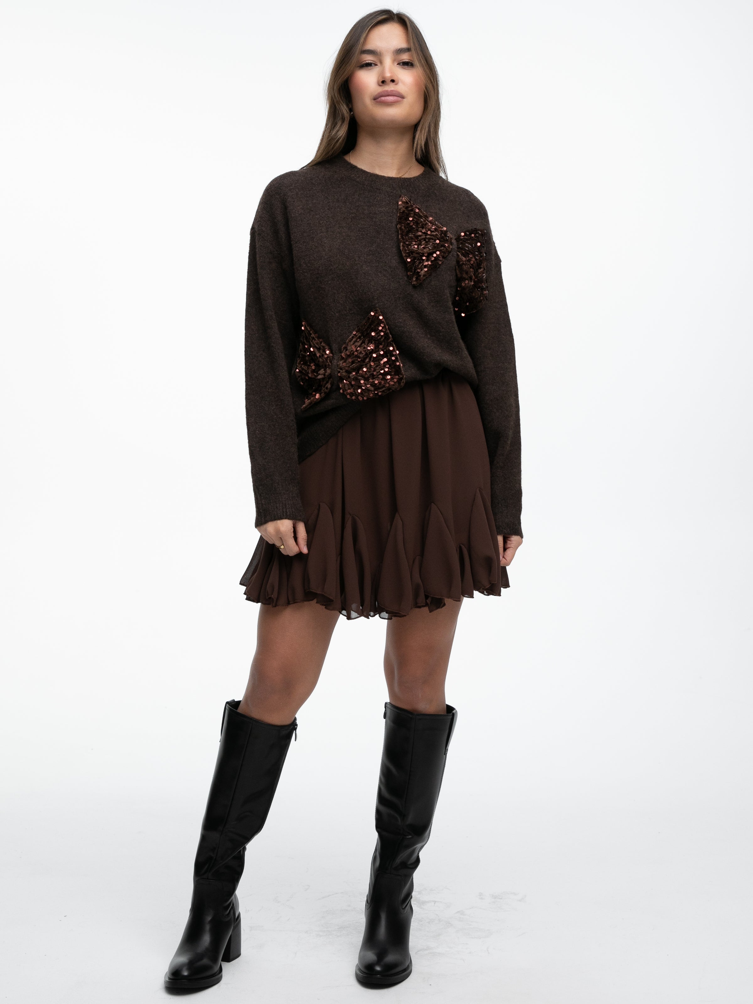 Strickpullover mit Pailletten-Schleifen „Aurora" in Braun
